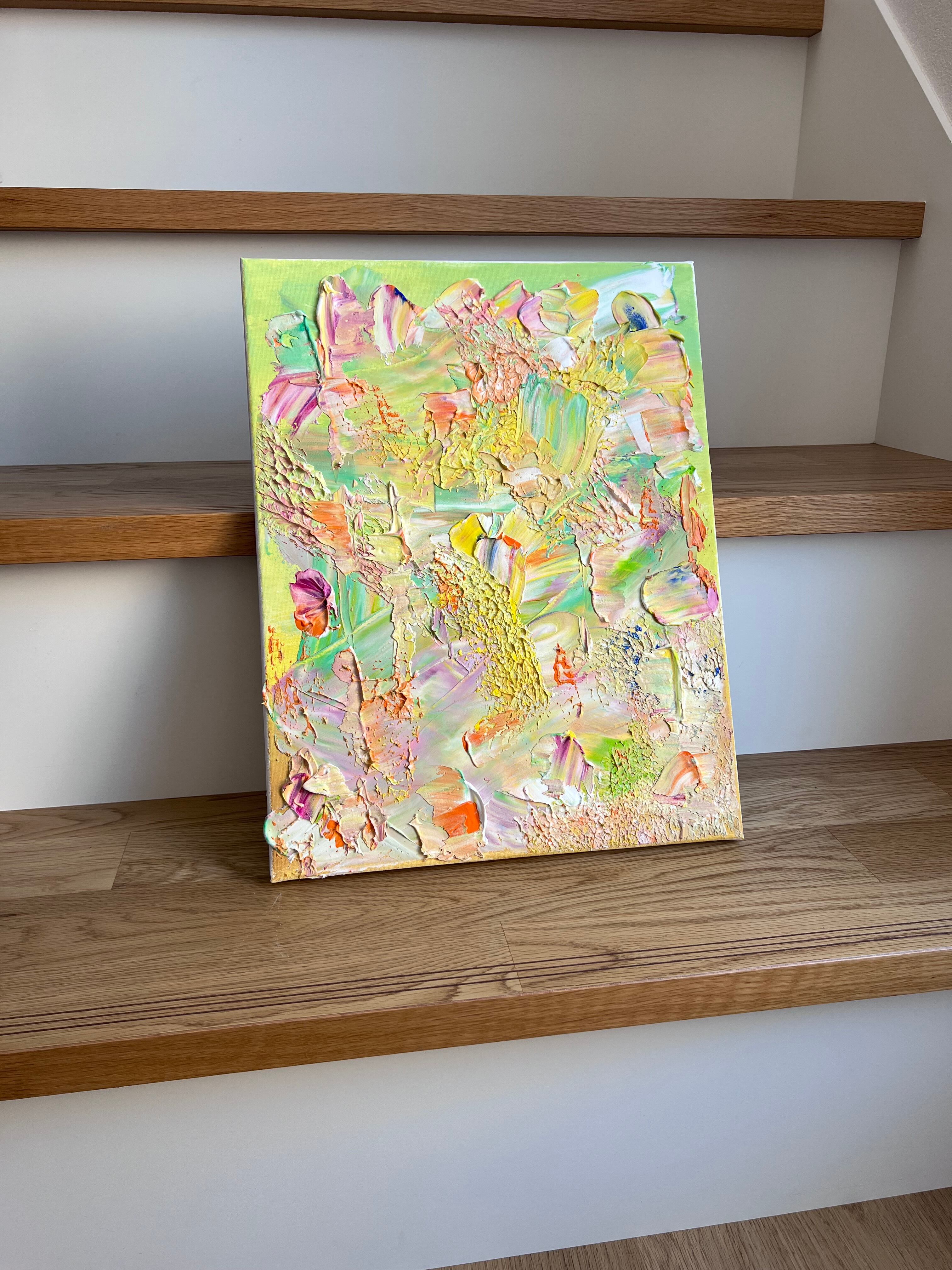 アクリル絵の具にモデリングペーストを混ぜた立体感のあるテクスチャーアートです。